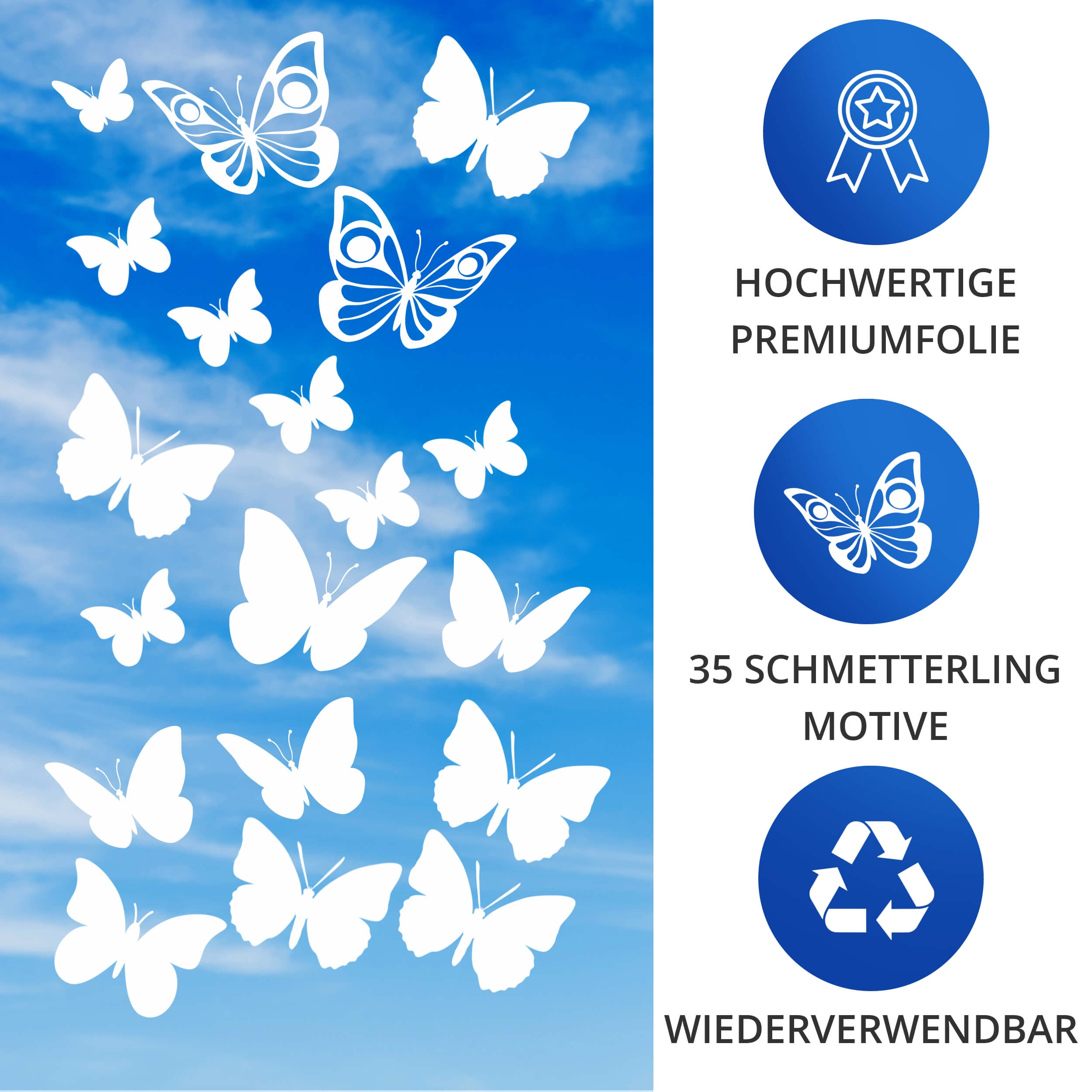 Neben der dekorativen Funktion bieten diese Fenstersticker auch einen praktischen Vogelschutz. Insbesondere in der warmen Jahreszeit können Vögel gegen Fensterscheiben fliegen und sich verletzen. Mit den Schmetterling Aufklebern schaffen Sie eine visuelle Barriere, die Vögel davon abhält, gegen Ihre Fenster zu fliegen. So tragen Sie zum Schutz der gefiederten Freunde bei und verleihen Ihrer Dekoration einen zusätzlichen Nutzen.